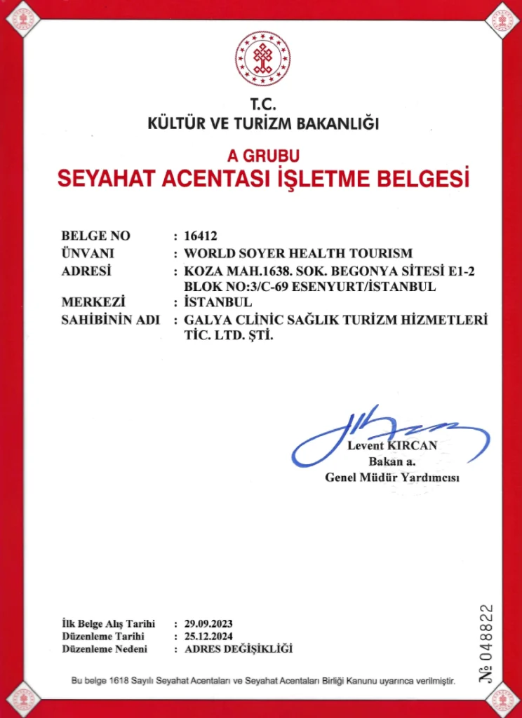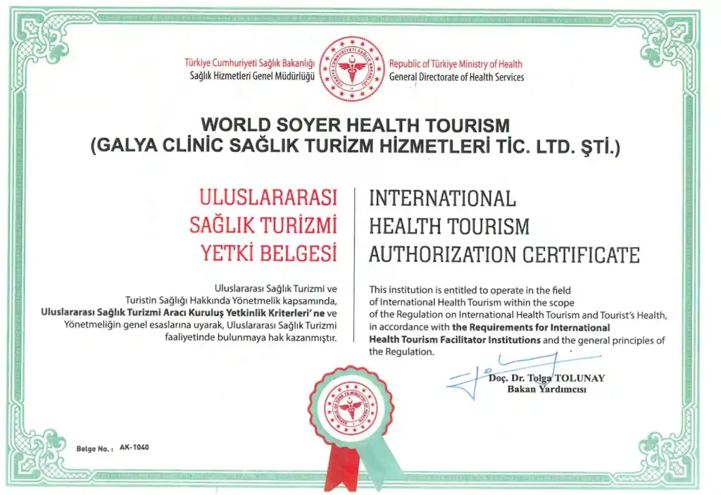 Galya has an international health tourism authorization certificate and we offer treatment opportunities in our contracted health institutions with an international authorization certificate.